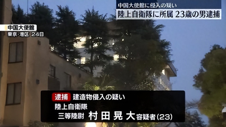 此东谈主自称是日本自保队现役军官,扬言要“以神的花式杀死中方酬酢东谈主员”,在翻入大使馆后,被本身东谈主员制服。#日本警方称将对中使馆24小时劝诫#