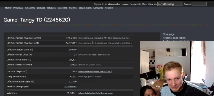 故事发酵于3月上旬的一场直播,刚刚上线新游的Cakez77直播掀开了他的Steam后台,以稽察游戏的收入。
