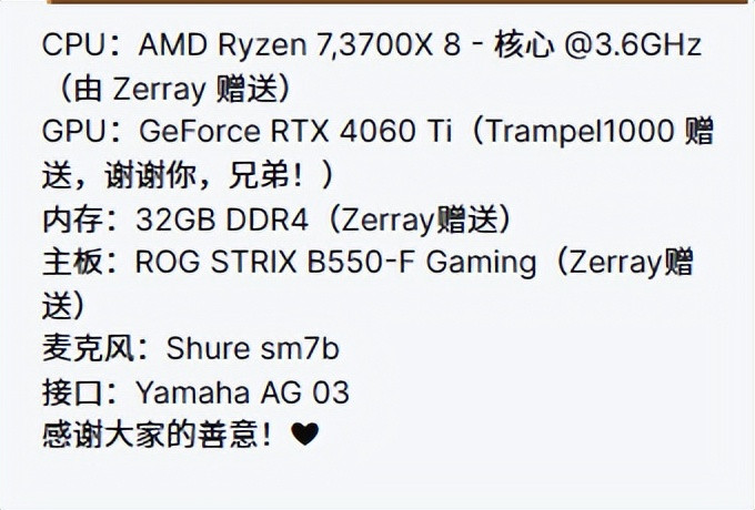 所幸,除了家东谈主的因循,4年雷打不动地栽种直播,也为Cakez77积存了一批中枢粉丝。除了陪同与冷漠外,他们在现实层面也给Cakez77带来了许多匡助,当Cakez77电脑损坏无法链接栽种地,是那一份份来自五湖四海的爱,为他拼起了再远行的船。