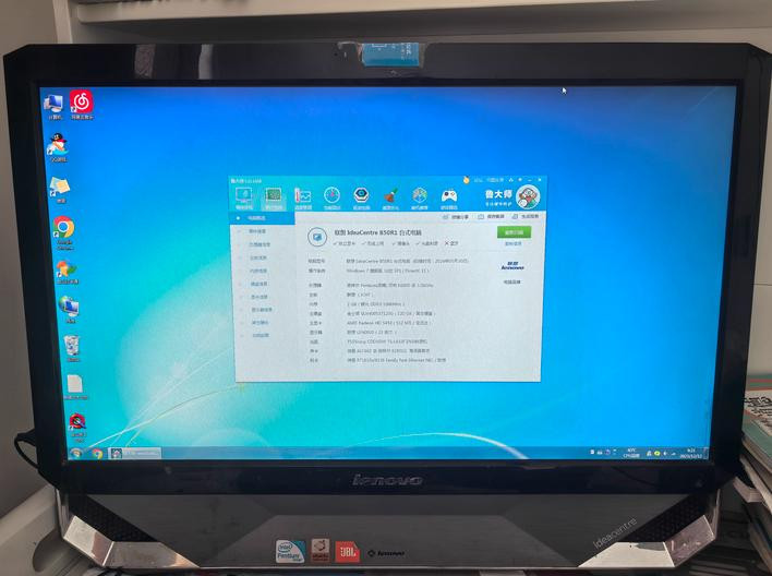 23寸的大屏,放在以前关联词一体机里的巨幕了,目下拿回家看个剧,也比抱着个14寸条记本状态。我挑升查了一下,它的音响的确是JBL的,这点在以前关联词联思高端机的卖点。何况光驱、录像头、键鼠全套齐是标配,拿回家插上电,表面上就能径直开机,系统也曾情感满满的Win7。