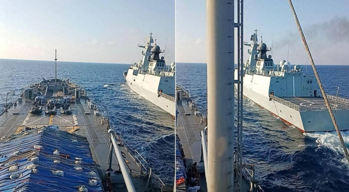 3月25日,菲律宾舟师舷号507的“本格特”号坦克登陆舰在南沙中业岛隔邻海域,与中国舟师舷号532的“荆州”号导弹护卫舰发生近距离构兵,差点撞上中国战船,两边最近距离仅5到8米,几乎发生碰撞,最终菲方舰艇在临了技能仓促转向战栗。