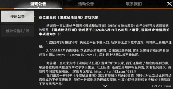 近日由漫威授权,网易制作的卡牌游戏《漫威秘法怒潮》通知,由于运营政策的调理,游戏将于5月19日停运。