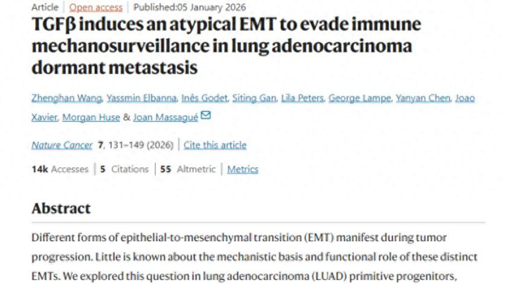 2026年1月,好意思国顾忌斯隆-凯特琳癌症中心的商酌团队在《天然·癌症》杂志上发表了一项最新商酌,揭示了癌细胞怎样永久“暗藏”在体内逃幸免疫系统袭击的机制。
