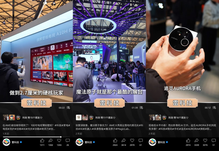 同期,基于现场拍摄与制作,雷科技AWE报谈团一共产出18条视频,涵盖探展Vlog、高端对话等实际,在全网获取超千万次播放。