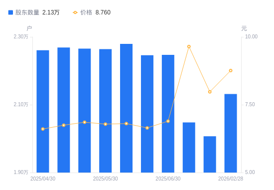 日历A股户数(户)绽放A股户均执股数(股)户均执股市值(万元)2025-12-312007033871.5627.012025-09-302047733198.3332.022025-06-302247130252.5120.862025-06-202245830283.8120.122025-06-102279429837.4020.302025-05-302264130039.0320.382025-05-202265430021.8020.582025-05-092268829976.8020.222025-04-302260830082.8819.872025-04-202270129959.6419.70
