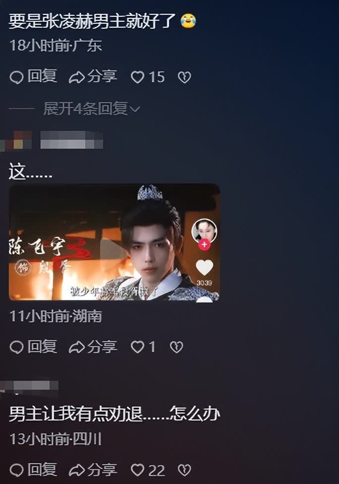 因为张凌赫最近在《逐玉》的颜值展示,不雅众们亦然在挑剔区许诺“换男主”。