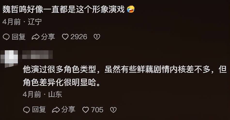 以至魏哲鸣和王天辰相似,王人是同时开播两部剧,用两个脚色展现演技和脚色塑造的反差。