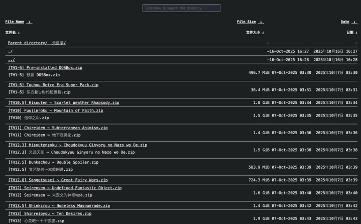 (搜索东方Project的全套游戏,因为列表很长,这里只截一部分)