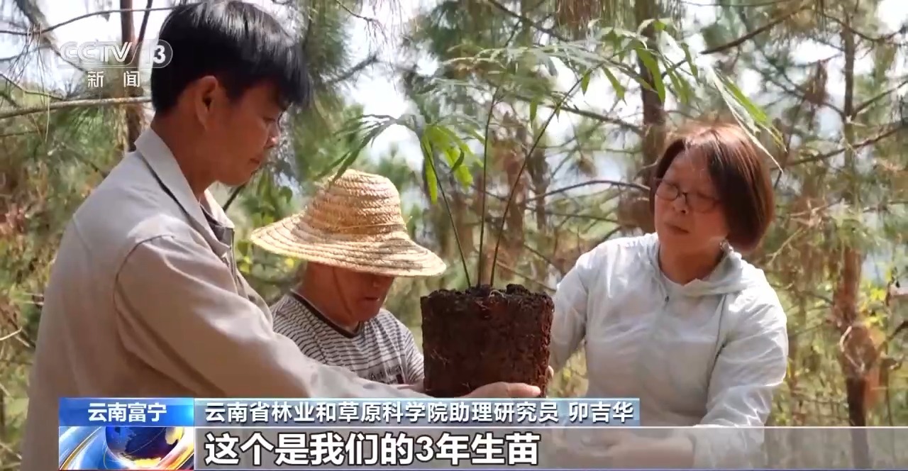云南省林业和草原科学院助理征询员卯吉华:这个是咱们的3年生苗,根系也相比好,现时也相比适合作念田野追念。种的时分一定要精通,不要弄散,回土的时分要精通捡出大的石块,九游jiuyou浇水的时分尽量从里边浇,让水从里边流到外面,这么的话更利于植物根系接收水分。
