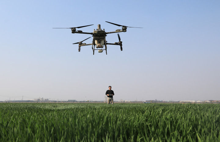 2026年3月20日,在河南省焦作市温县黄河滩区,无东说念主机手操作无东说念主机进行小麦春管功课。新华社发(黄福兴摄)