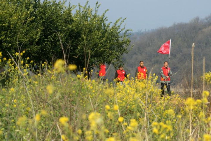 早春3月,马河镇关庙岗村的漳河岸边,村支书老郑率领巡河队员从青翠的橘园果树间走来。
