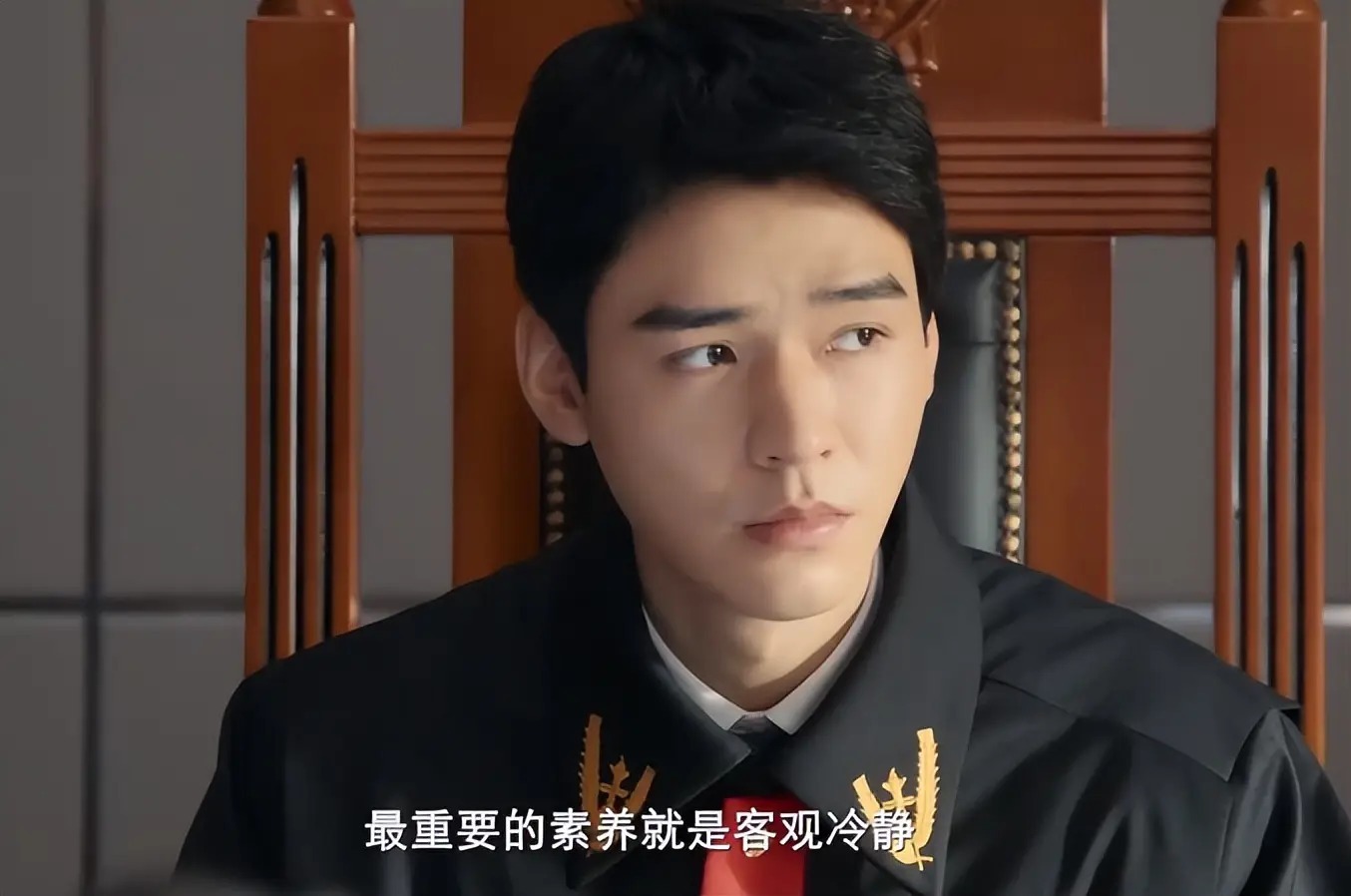 预报片里他饰演的沈谢秩一稔法官制服,立领挺括,神情尊容,很有后生法官的范儿。
