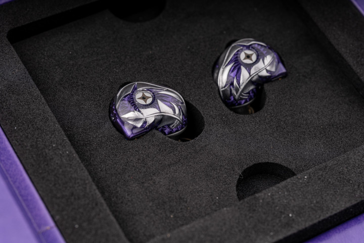 此岸银翼腔体主要接纳银、紫配色,里面的银色自己是磨砂只敢,但外壳上层是有一定反光性的,是以在拍摄进程中会呈现出腔体的明后度,中心的“恶魔之眼”周围是羽翼纹理的讳饰,全体既安妥此岸银翼的定名、又贴合了ARTPICAL的家眷讲话。腔体自己的3D打印工艺相配深湛、也一向是ARTPICAL家的刚硬,1600万的高像素级的打印工艺用在这样小的一个腔体上,带来的口角常清雅的不雅感、况且模拟出了内侧高下远大的立体感,复杂又不失高等。腔体的佩带比拟接近之前的路西式,属于比拟典型的长导管、深插耳说念的筹画,这种作风的佩带相配检会东说念主体工学筹画智力,以我个东说念主感受而言,此岸银翼的佩带口角常接近私模级别的贴合度的,况且内侧的腔体弧度相配的平滑,即便小耳廓的用户也很难出现佩带的不适感。