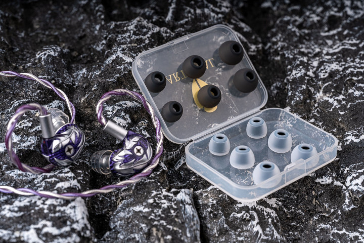 掀开包装盒,这个紫色且带金属铭牌的收纳皮盒作念的相配漂亮,取出嵌入腔体的海绵后即可看到一个耳塞套配件盒,不外腔体自己在出厂时标配了一双透明的液态硅胶套,同期亦然我试下来声息最好、最安妥“狭义ACG”的一个型号,下文会浅易作念一下三个耳塞套的声息对比。
