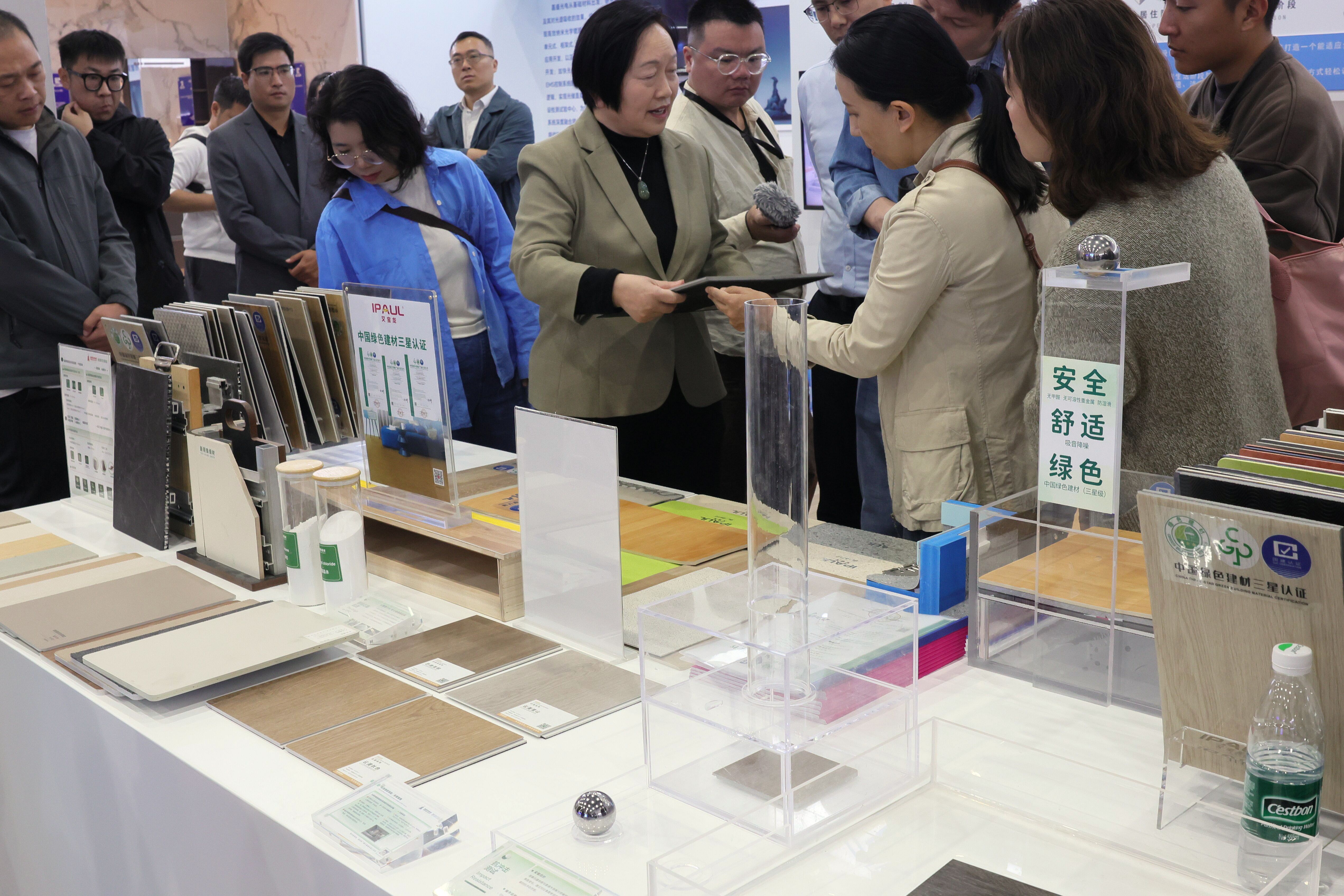 光伏面板专区亮点隆起,光伏地砖白昼蓄电、夜晚踩踏发光,还可定制喷画行动布景板或幕墙面板,兼具环保与好意思不雅属性。此外,免胶安装大地材料、磁吸干挂式硅酸钙板、高分子树脂晶板等绿色建材,进一步彰显全周期资源量入制出的绿色理念。
