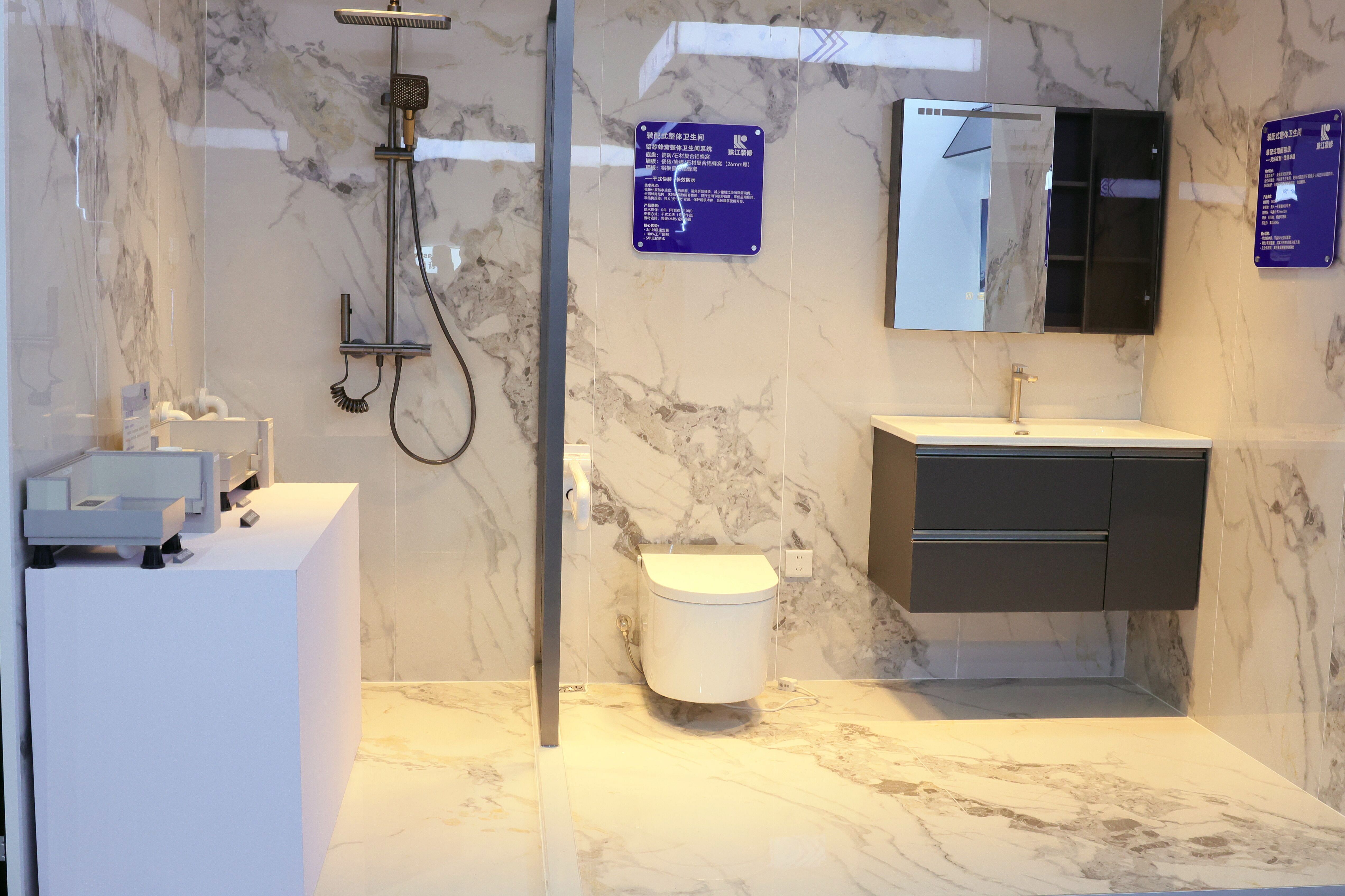 绿色板块围绕“泉源选材—历程建造—长期使用”全链条,传递高效节能与绿色可抓续的居住理念。展区内,防水底盘接管同层/异层直排盘算,集成管说念无需改良千里箱,大幅减少建筑垃圾;铝芯蜂窝举座卫浴接管100%工场预制,可齐备3小时极速干式安装,其防水保修期适当广州市“好屋子”建立20条措施中不低于10年的条款。