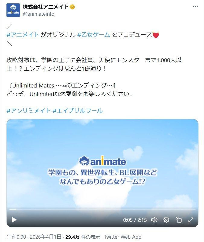 Animate发布了一款原创乙女游戏设定,可攻略变装提高1000东谈主,从校园王子到社畜,从天神到怪物,援手异寰宇转生剧情,od体育(中国)手机版致使还有“多达1亿种结局”,游戏名字就叫作念《Unlimited Mates ~∞的结局~》。