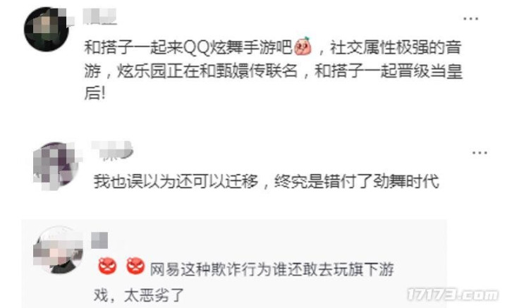 关于游戏的停运,网易的老敌手腾讯脱手就很快了,一堆水军顺便宣传《QQ炫舞手游》来拉东说念主。还有网友艳羡,还认为不错迁移,终究如故错付了。关于官方这么出尔反尔的操作,更有网友直言,这是一种诈骗行动。