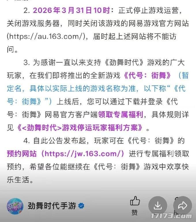 近日由久游研发,网易代理的音游《劲舞时间》告示,游戏将于6月1日停运。