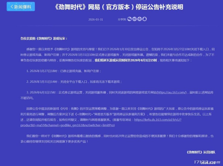 四肢抵偿,网易把蓝本3月31日的停服期间,延后到2026年6月1日。