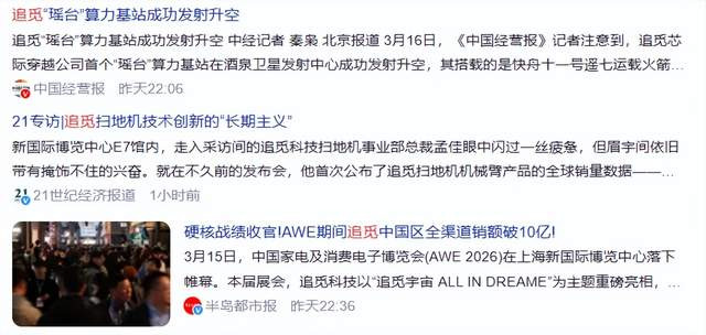 值得一提的是,在此前刚刚扫尾的中国度电及滥用电子展览会(AWE 2026)上,追觅科技的泄漏惊艳全网,被数十家官媒齐集报谈,实力彰显中国智造的底气。